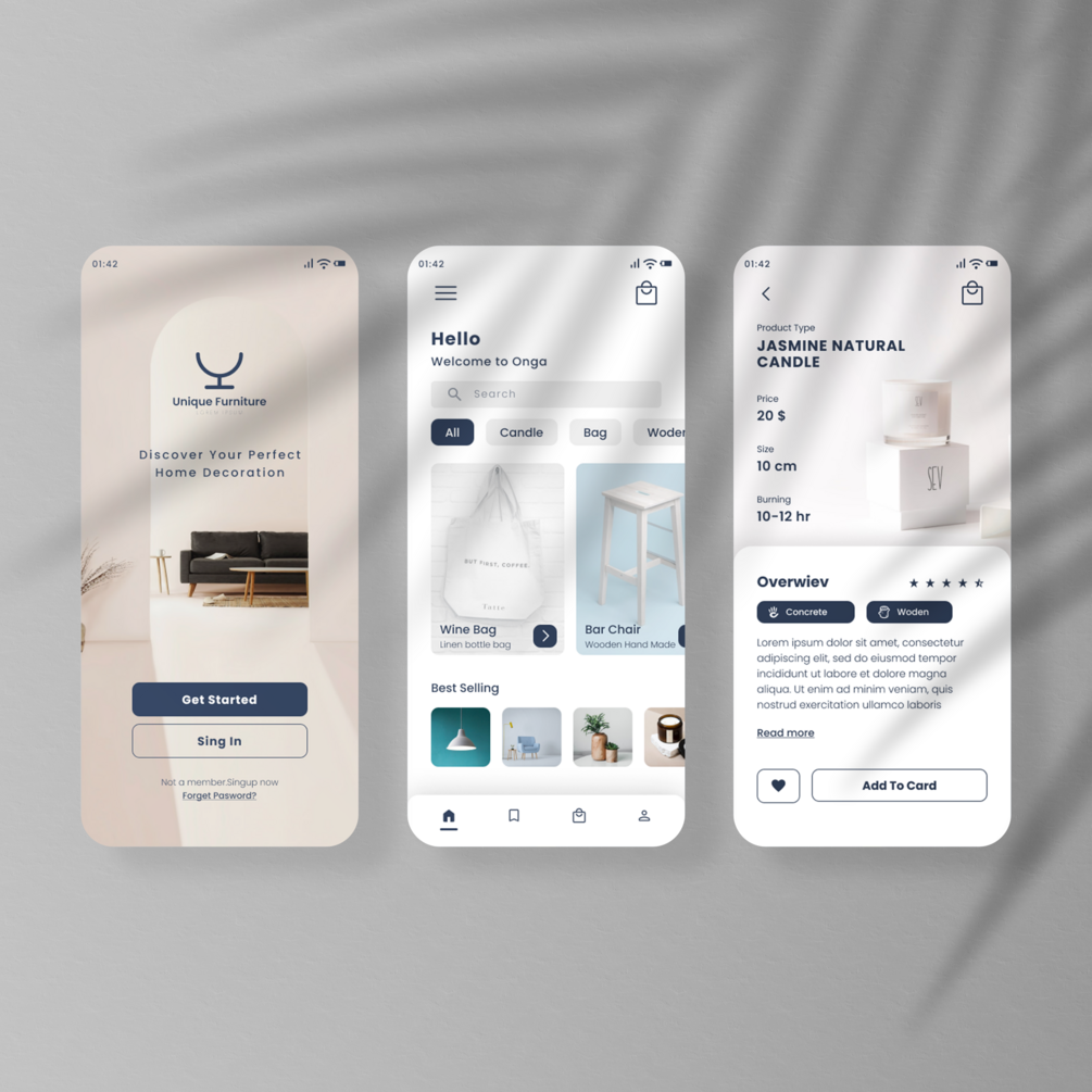 Hi. this is a decoration app screen design file. This file work on Figma design tool. This package iclude a only Figma file.